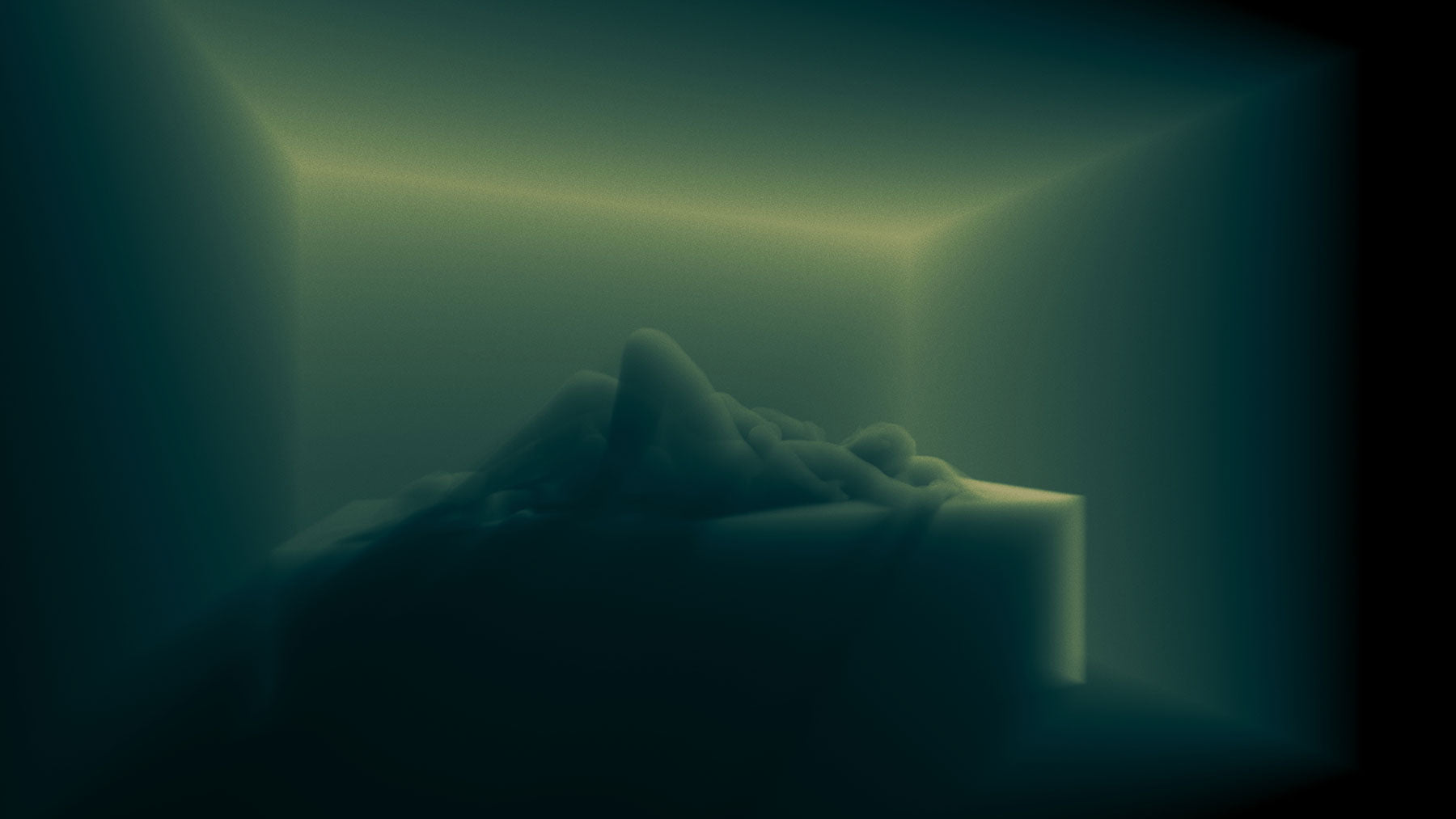 時を超えた場所。身体は静寂に身を委ね、やわらかく触れられるような光に包まれる。周囲の形は単なる構造ではなく、外を遮りながらもその先をほのめかす膜。静止した姿は、脆くも意味を求める原初の状態を映し出し、混沌と内省の狭間に漂う。内から生まれた光は、見せながら隠し、孤立とつながりの境界を形づくる。ここで身体は移ろいの中に浮かび、存在とは何か、そして何者になり得るのかを問いかける。
